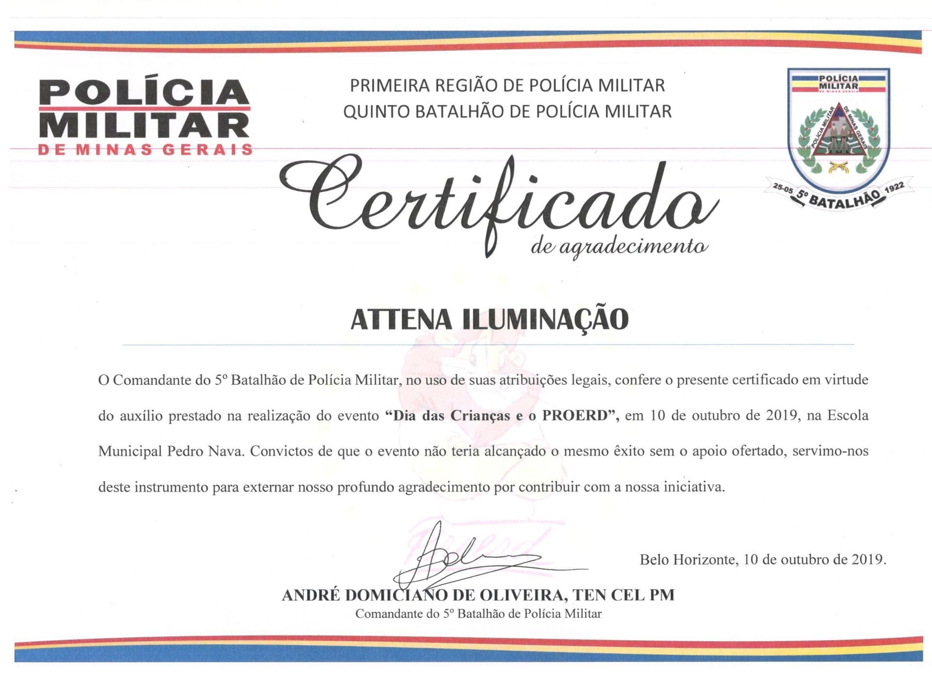 “Os instrutores do Proerd do bairro Pilar/Olhos D’água tiveram o prazer de contar com a parceria e colaboração da empresa Attena. Através deste grande ato de caridade e solidariedade mais de 1.500 crianças foram beneficiadas” – Cabo Sales – Coordenador Proerd | Bairros Pilar e Olhos D’Água.